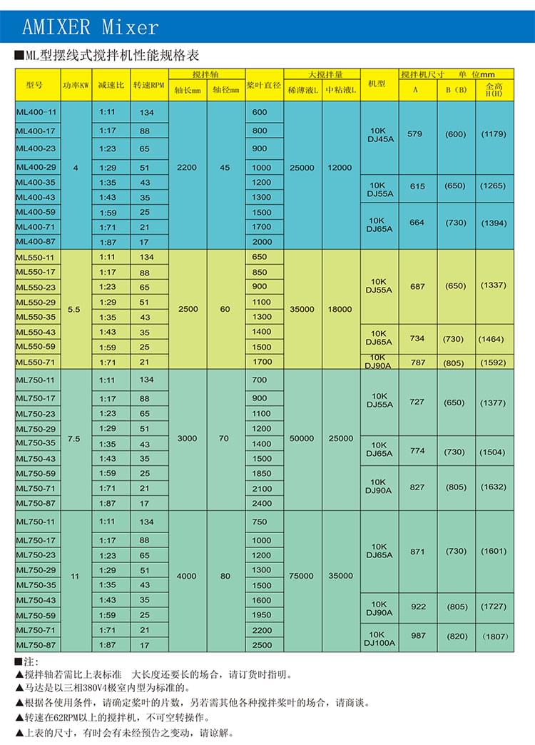 ▲擺線式慢速攪拌機ML型機型配套法蘭尺寸表