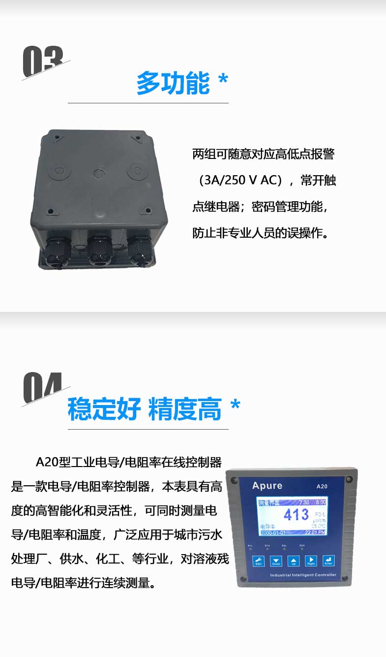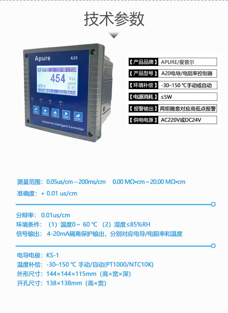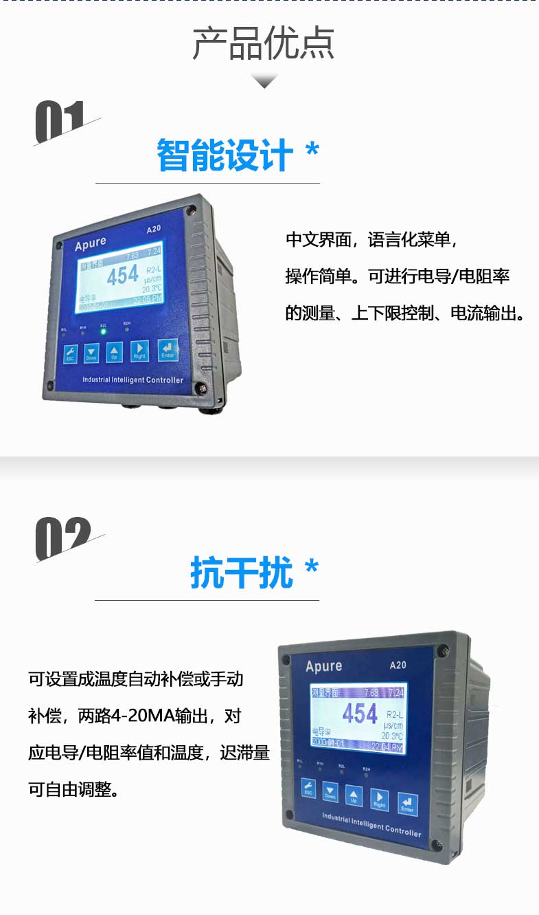 型號:Apure愛普爾電導率儀A20CD系列工業在線電導/電阻率控制器A20CD