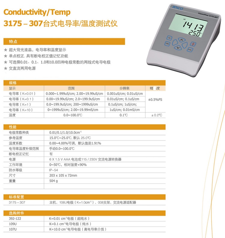 電導(dǎo)率K=1精度 ±0.5% FS