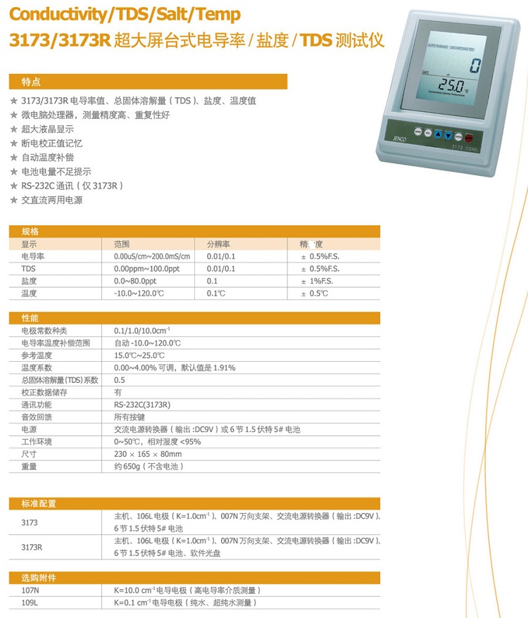 總固體溶解量 分辨率K=10 1 ppm~0.01 pH (K=10至3范圍)