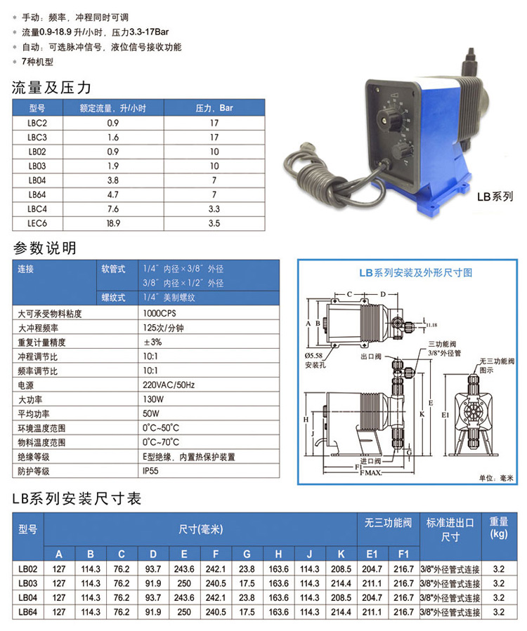 帕斯菲達加藥計量泵LEC6E2-KTC3無泄漏PVDF脈沖控制電磁泵隔膜泵