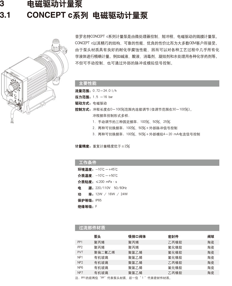 耐腐蝕CONC1002型電磁隔膜泵 普羅名特PP泵頭小型加藥計(jì)量泵