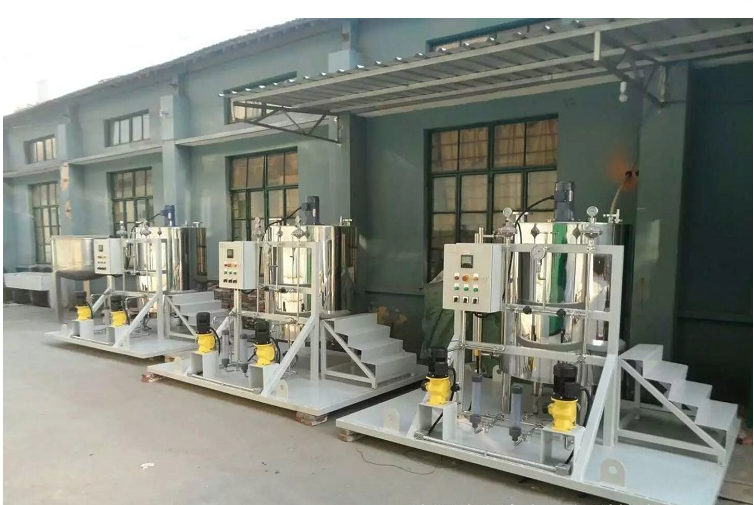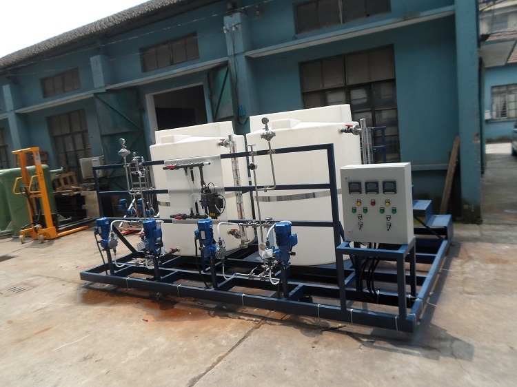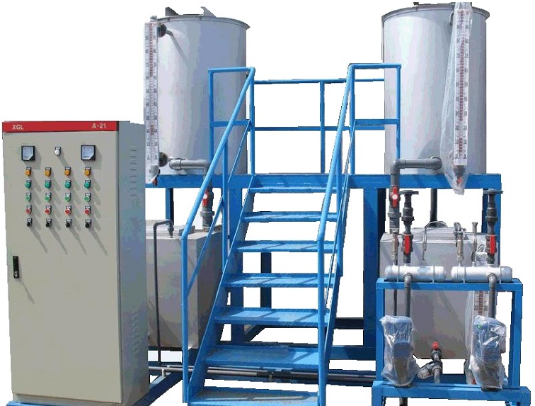 該裝置裝置配帶控制柜,可采用PLC控制或變頻控制??刂乒裨O置了低液位停泵、計量泵及攪拌機故障聲光報警等功能。