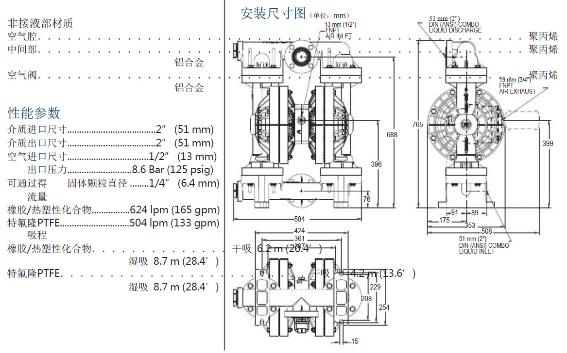 美國威爾頓氣動隔膜泵P200螺栓塑料泵說明書