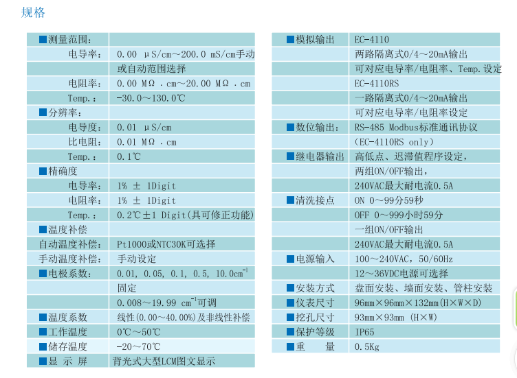 型號:智能型電導率變送器EC-4110RS