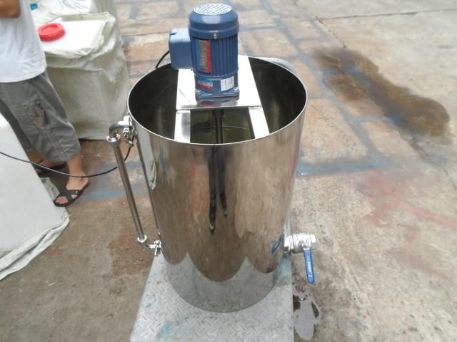 工業不銹鋼電動液體攪拌機KD-50型與桶安裝效果圖: