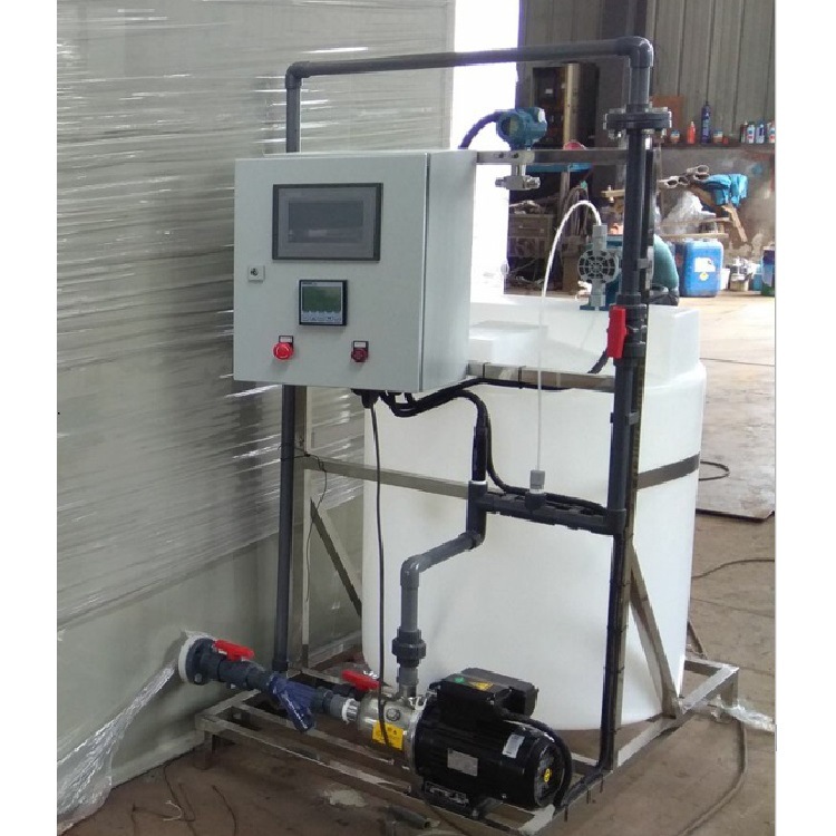 3、水處理加藥裝置。在水處理過(guò)程中向自來(lái)水、廢水、污水中加藥。主要用于有關(guān)給排水處理、環(huán)保等工藝流程。如自來(lái)水廠、賓館、飯店、游泳池、污水處理廠等。