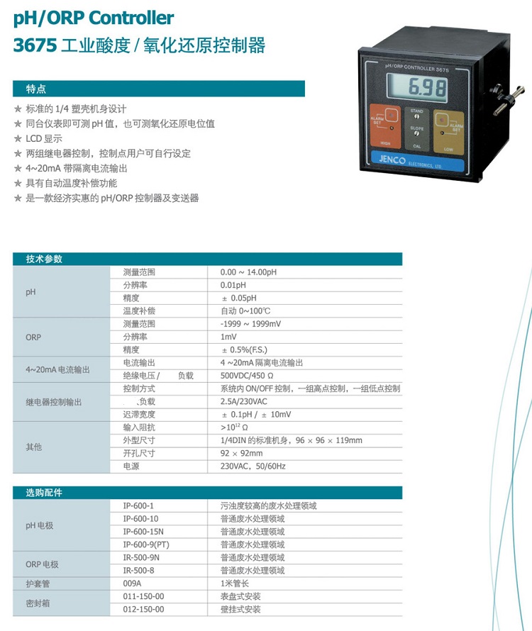 工業(yè)PH/ORP變送器3675 任氏/JENCO酸度/氧化還原監(jiān)測儀表(單機)