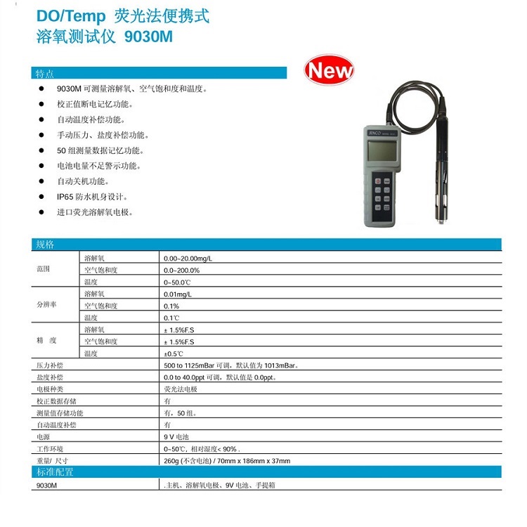 9030M型便攜數(shù)顯熒光法溶解氧測試儀