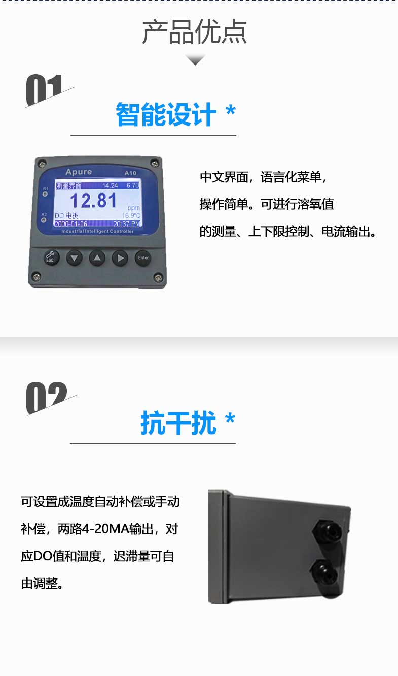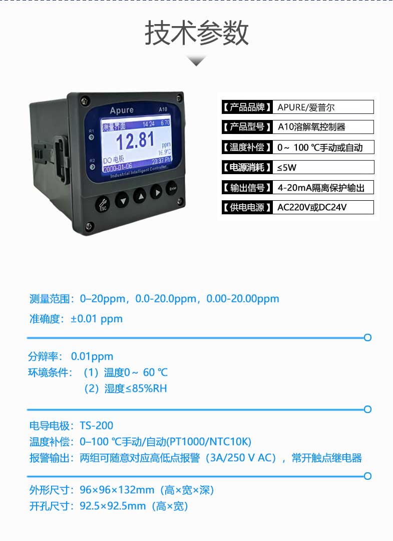 愛普爾Apure溶氧儀A10DO工業在線溶解氧控制器多功能水質檢測儀