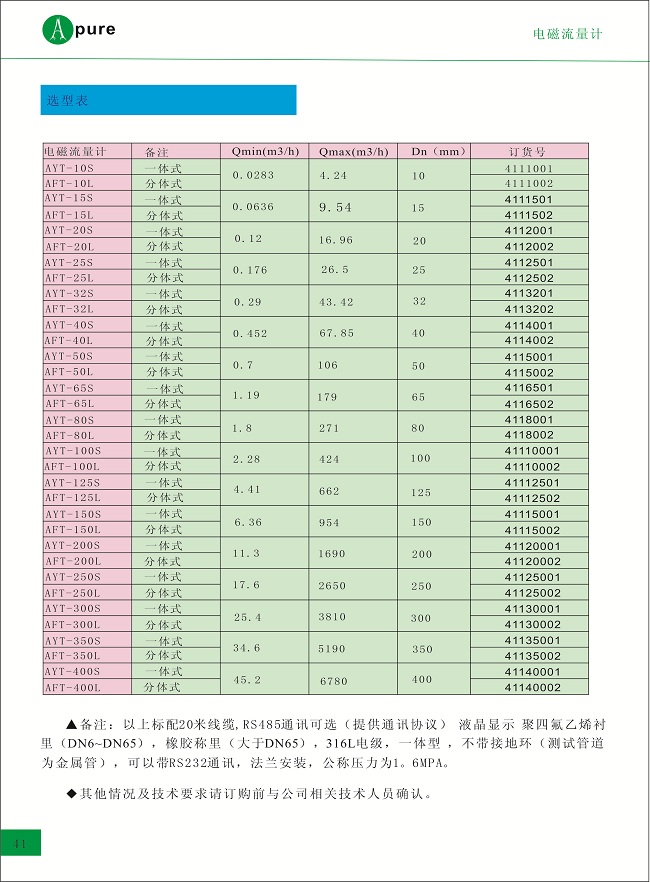 Apure愛普爾智能電磁流量計AFT分體式污水測量