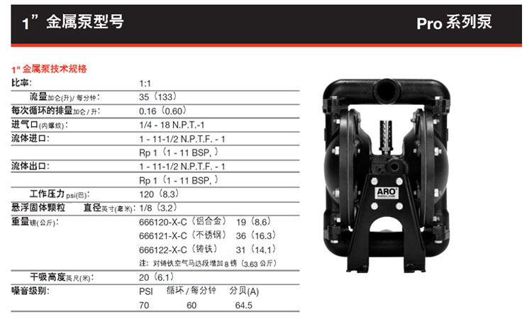 美國ARO 英格索蘭氣動(dòng)隔膜泵 PRO系列 選型樣冊(cè)