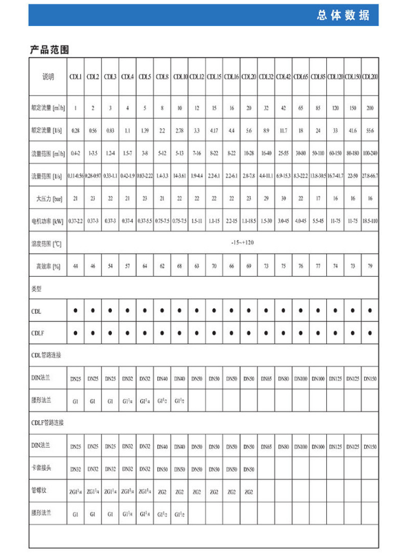 南方CDL,CDLF非自吸輕型立式多級(jí)離心泵,電機(jī)軸通過(guò)聯(lián)軸器直接與泵軸聯(lián)接,葉輪導(dǎo)葉采用不銹鋼板沖壓焊接或不銹鋼精密鑄造制成,泵進(jìn)出水口在泵底同一直線(xiàn)上(可配IEC或NEMA電機(jī))。