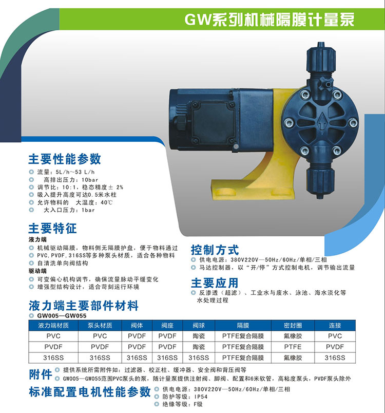 南方GW035加藥泵 隔膜式計量泵 36L 5bar 工程塑料廢水輸送機械泵