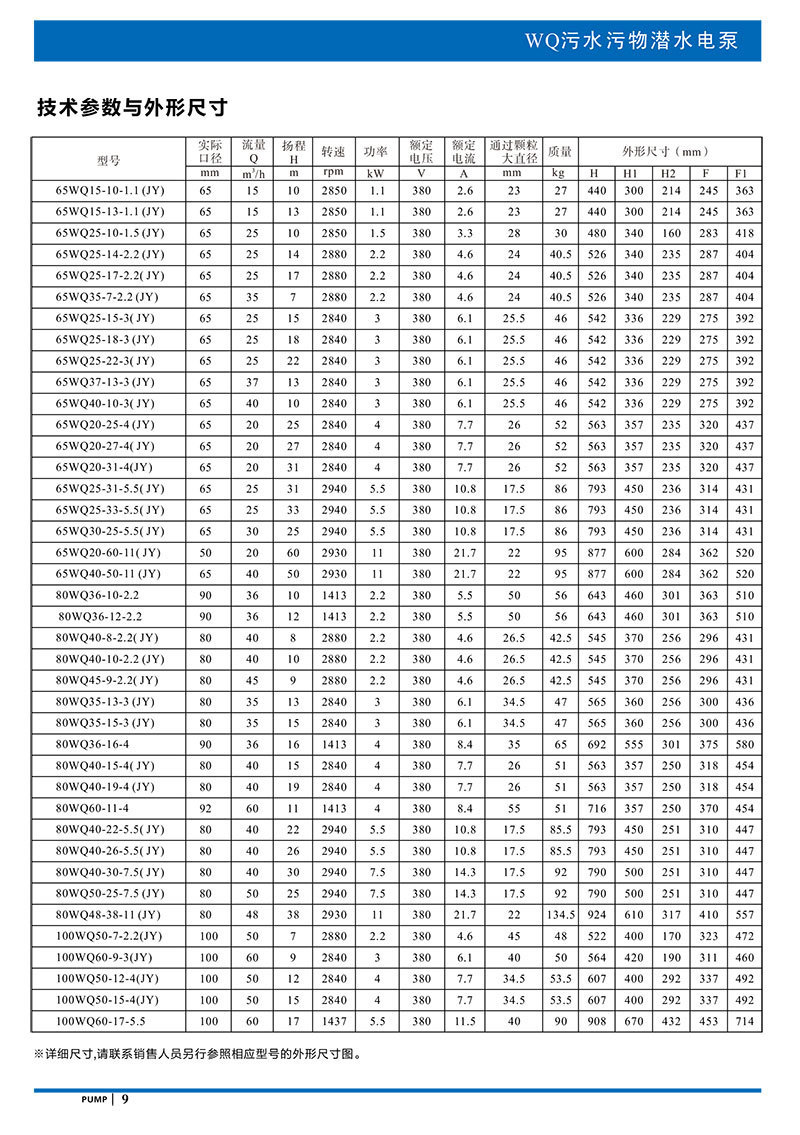 產品說明:南方WQ污水污物潛水電泵由電機與泵兩部分組成,兩者通過油室及機械密封組件隔開,分固定式自動耦合安裝和移動安裝。
