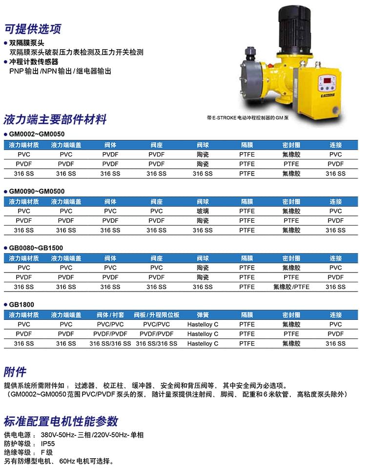 l PVC、 PVDF、 316SS 、高粘度、漿料等多種泵頭材質(zhì),適合各種物料