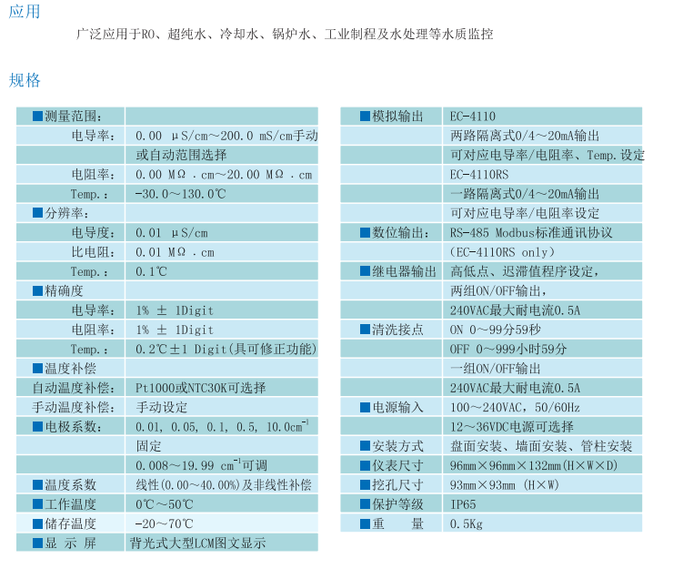 SUNTEX EC-4110在線電導率/電阻率變送器工業數顯電導率儀水質電導監測儀