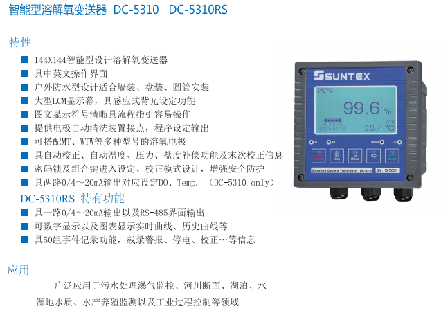 SUNTEX 智能型溶解氧變送器DC-5310 DC-5310RS