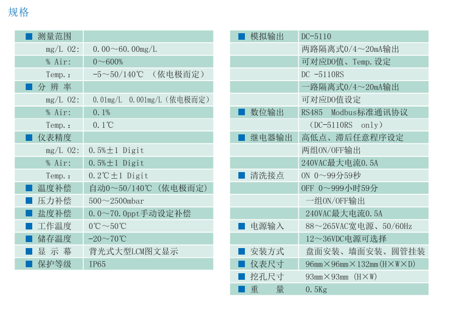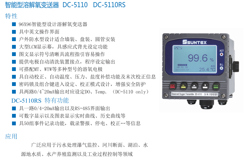 SUNTEX 智能型溶解氧變送器DC-5110 DC-5110RS