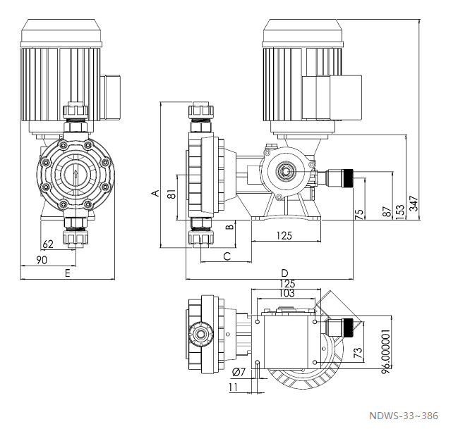 新道茨機械隔膜計量泵NDWS系列安裝尺寸圖