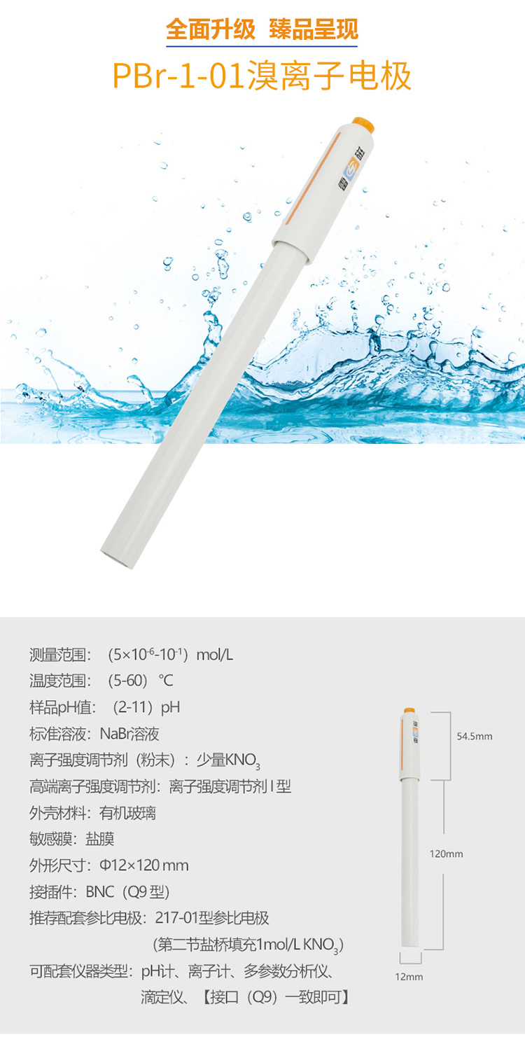 雷磁PBr-1-01型溴離子電極 實驗離子選擇性電極 傳感器探頭