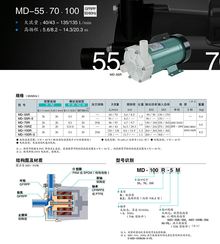 型號:IWAKI易威奇耐腐蝕磁力驅(qū)動泵MD-6