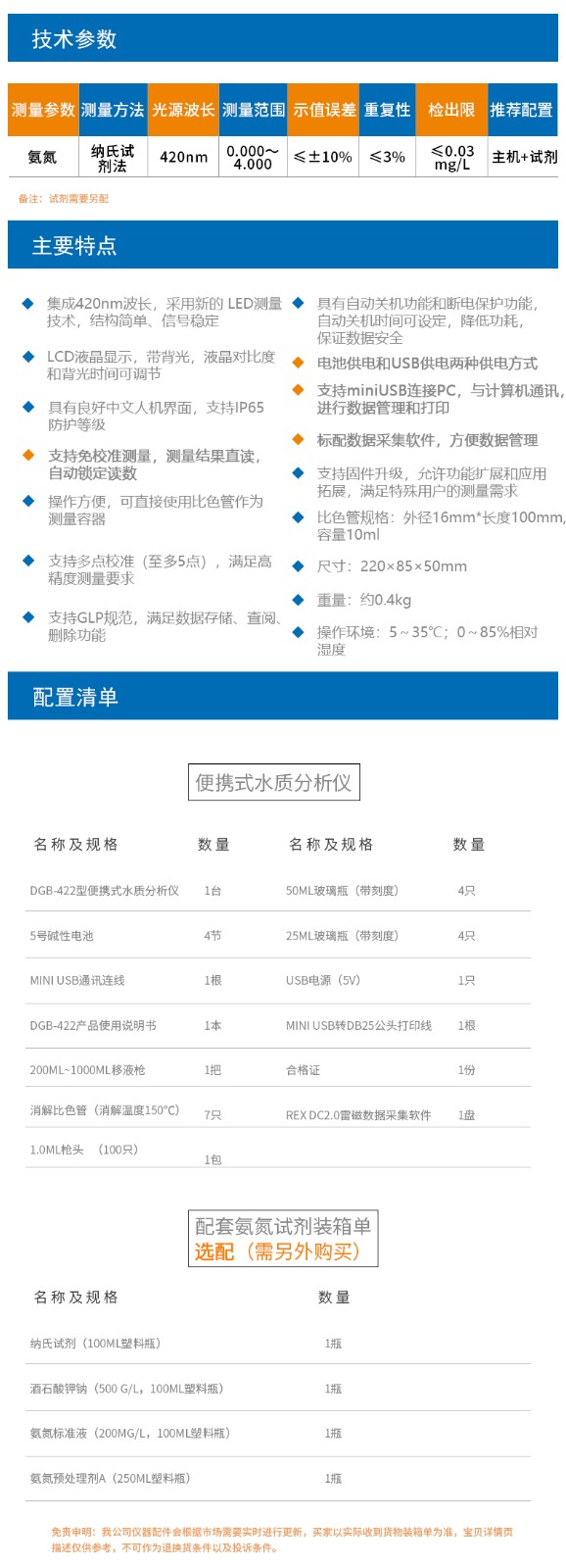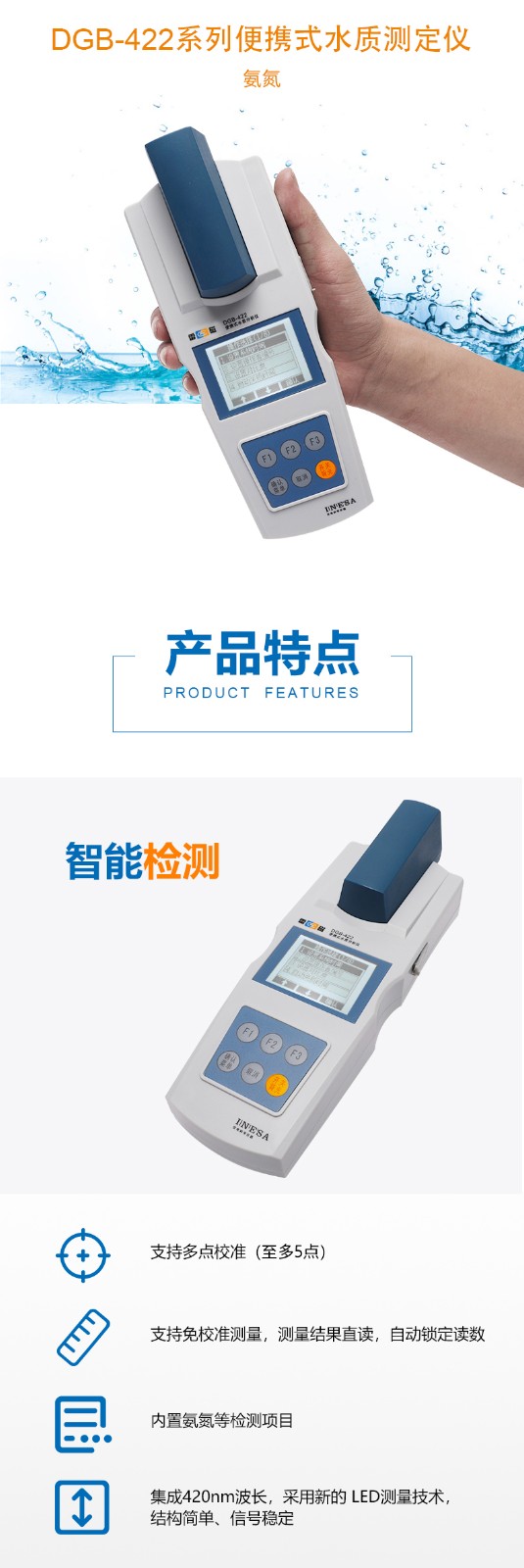 上海雷磁DGB-422便攜式水質(zhì)測(cè)定儀免校準(zhǔn)測(cè)量氨氮檢測(cè)儀測(cè)定儀