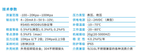 壓力變送器需要提供哪些參數