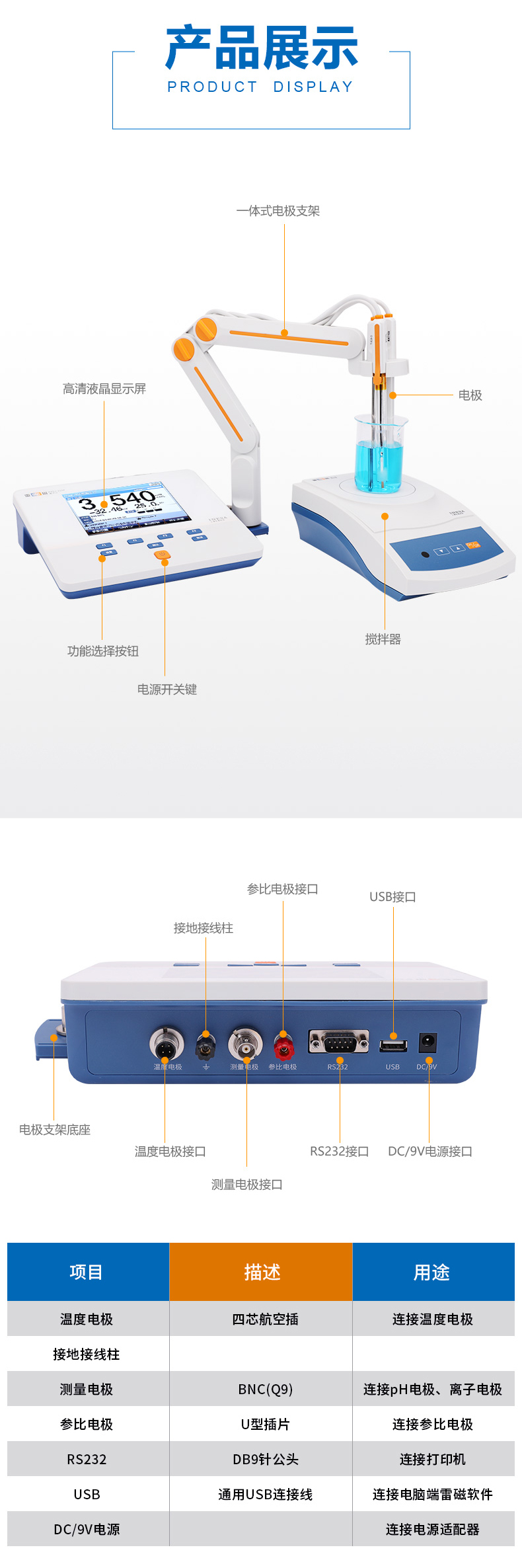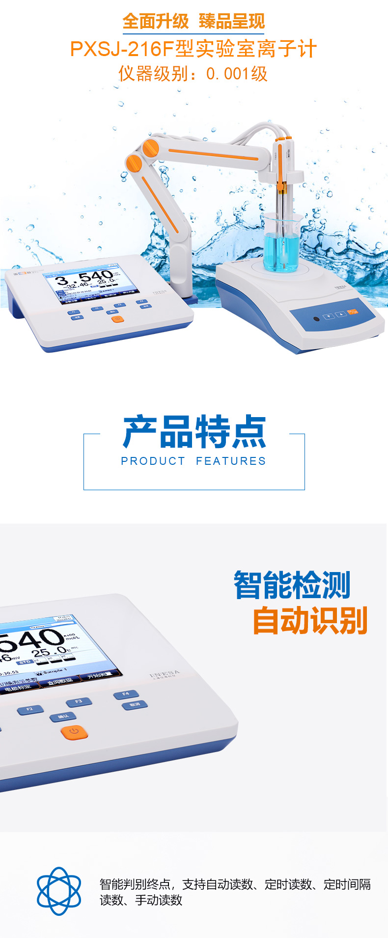 雷磁(leici)PXSJ-216F型離子計液晶屏幕自動手動溫度補(bǔ)償多種離子模式