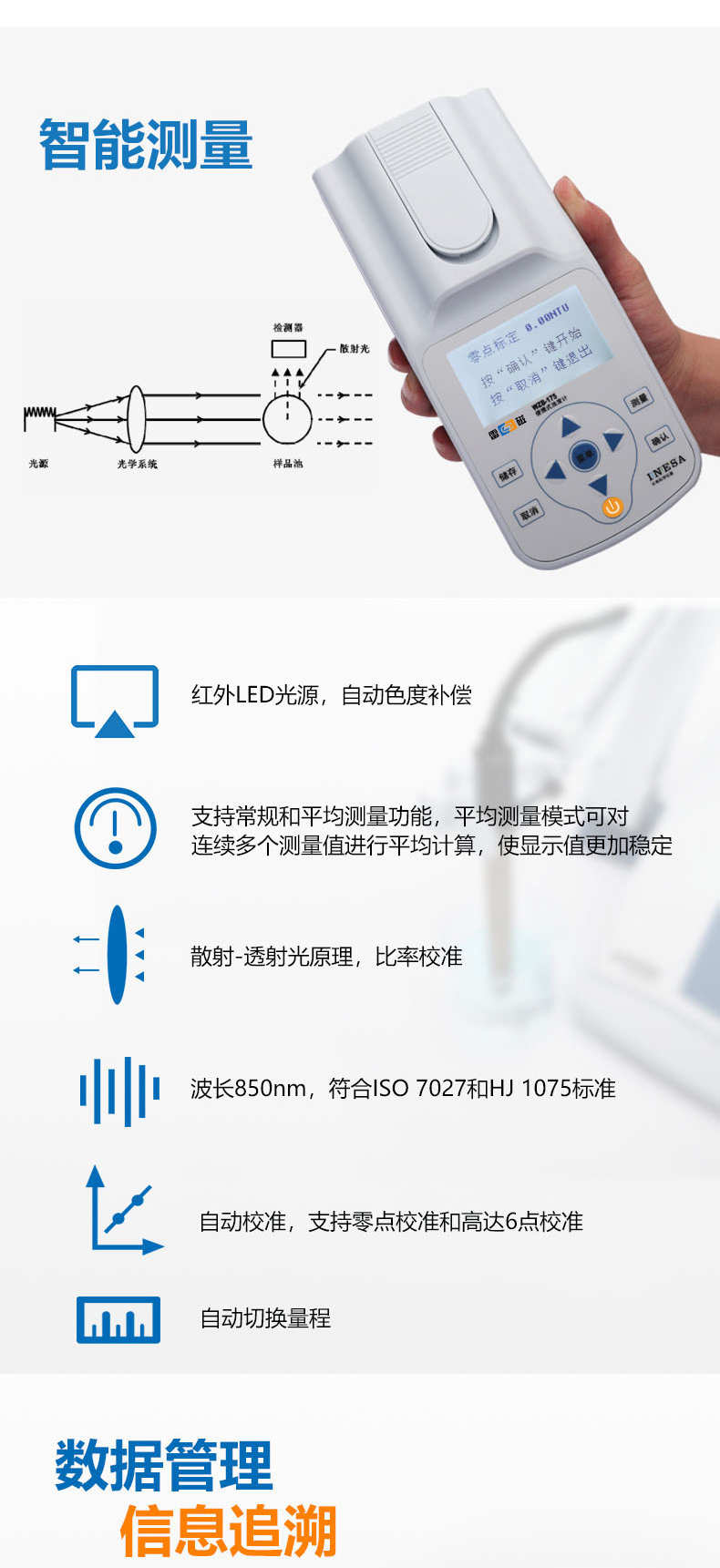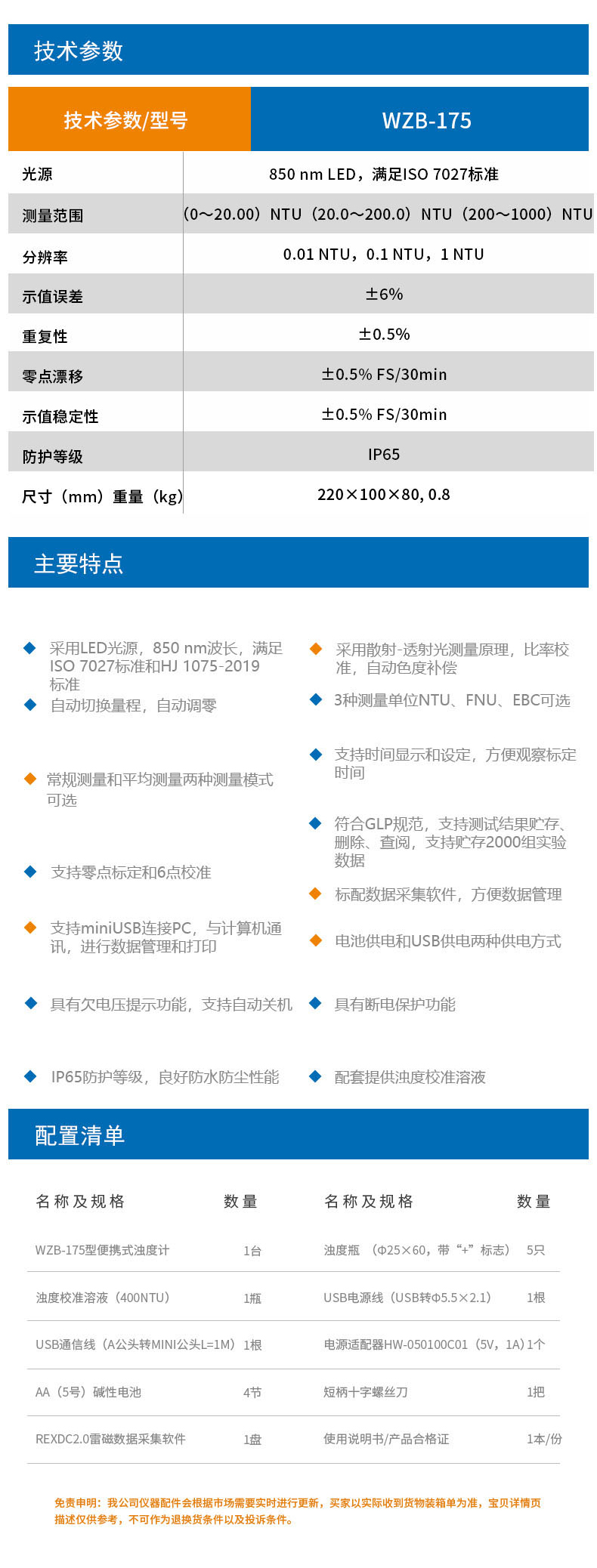 雷磁(leici)濁度儀WZB-175型便攜式濁度計水質(zhì)分析儀標準自動色度補償