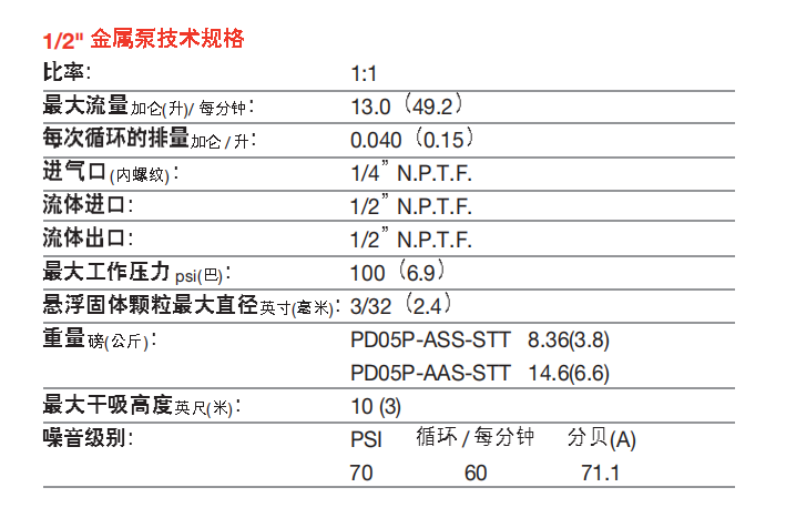 型號:1/2”金屬泵
