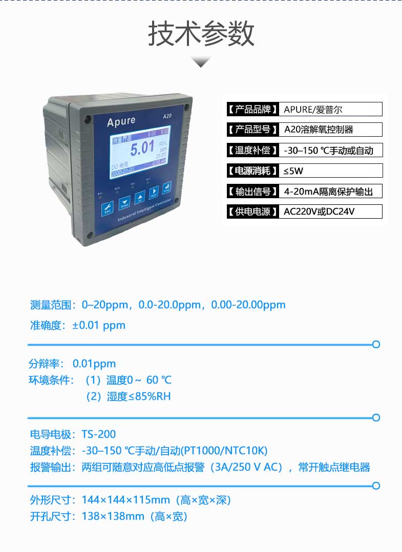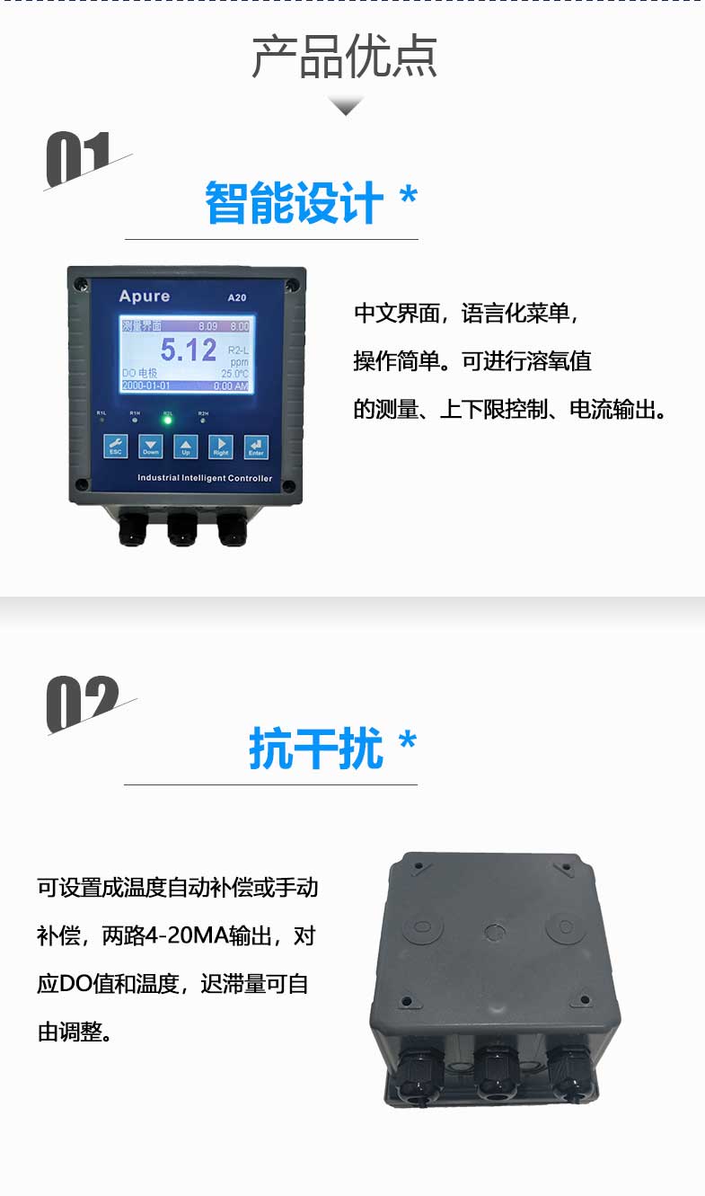 Apure A10DO智能數顯工業溶解氧儀在線DO控制器高精度溶氧測試儀