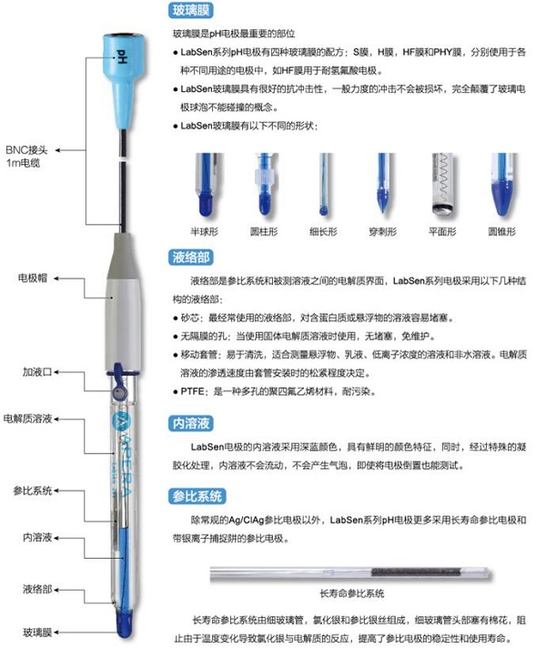上海三信LabSen841強堿ph傳感器用途:用于高溫和強堿溶液(10~14pH)的pH測試.