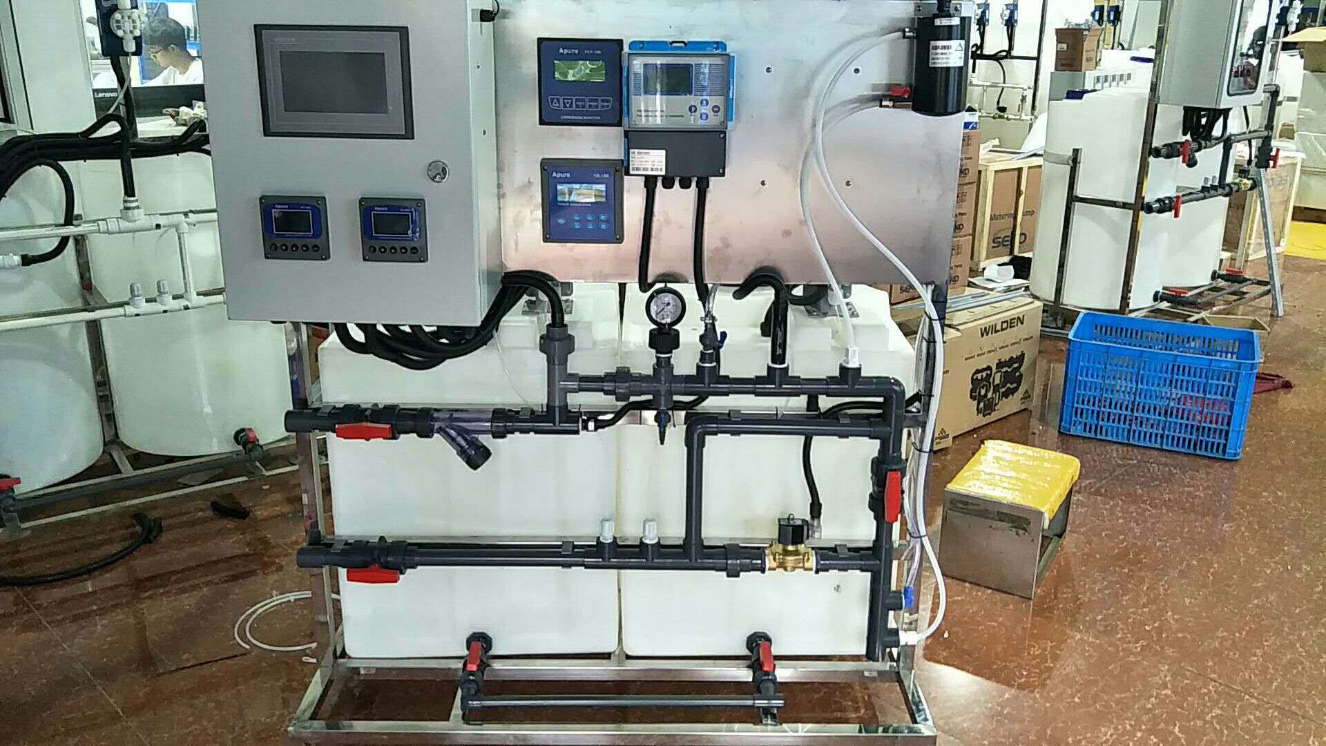 配置:該加藥裝置由計量泵、控制系統、流量計、變頻器、標定柱、背壓閥、閥和不銹鋼管道組成。