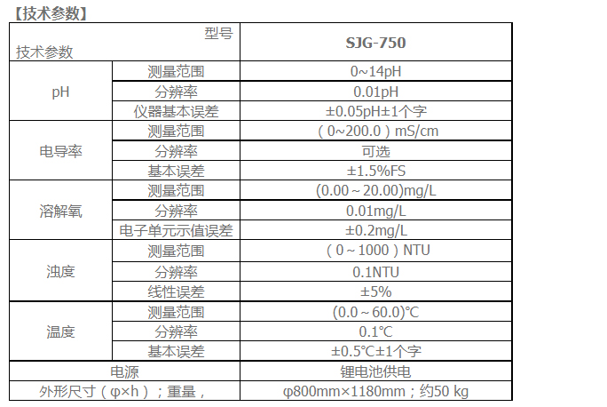 SJG-750型地表水多參數(shù)監(jiān)測儀,浮標(biāo)式結(jié)構(gòu),測量數(shù)據(jù)無線傳輸,適用于在河道水面上安裝作業(yè)。可同時(shí)監(jiān)測pH、電導(dǎo)率、溶解氧、濁度、溫度等參數(shù),為地表水水質(zhì)管理提供可靠數(shù)據(jù)。