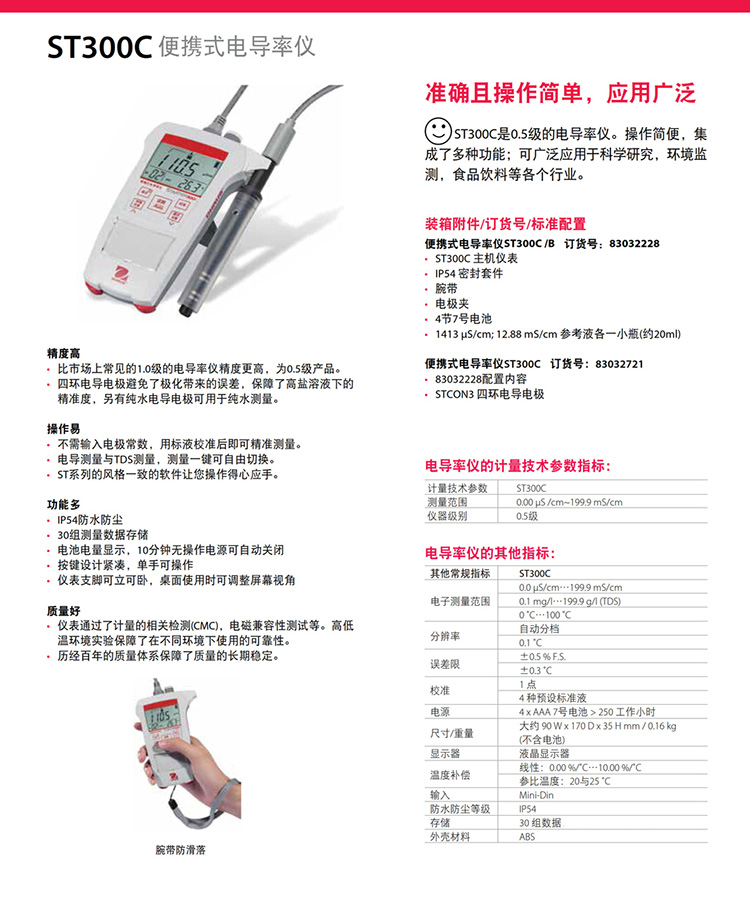 奧豪斯便攜式電導(dǎo)率儀ST300C防水防塵多功能工業(yè)在線電導(dǎo)率測試儀