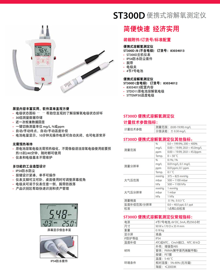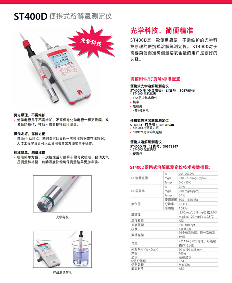 奧豪斯便攜式溶解氧測(cè)定儀ST300D/400D防水防塵工業(yè)在線do溶氧儀