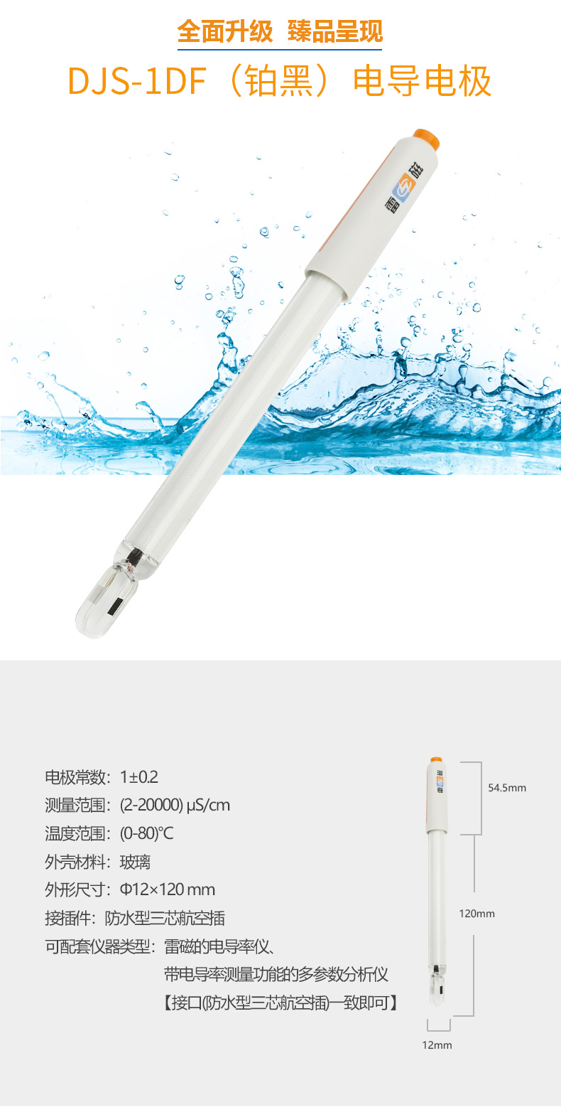 【雷磁】 實(shí)驗(yàn)室電導(dǎo)率傳感器測(cè) DJS-1DF 型電導(dǎo)電極【鉑黑】