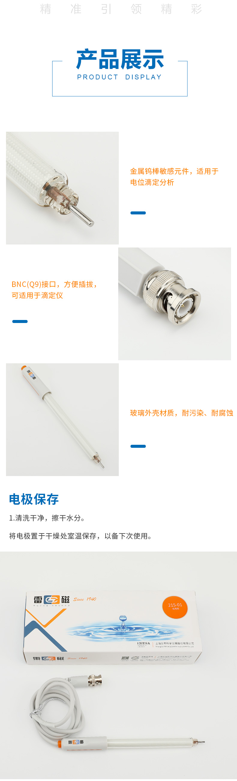 【雷磁 】金屬電極探頭傳感器 鉑銀銻鎢雙鉑 215-01鎢