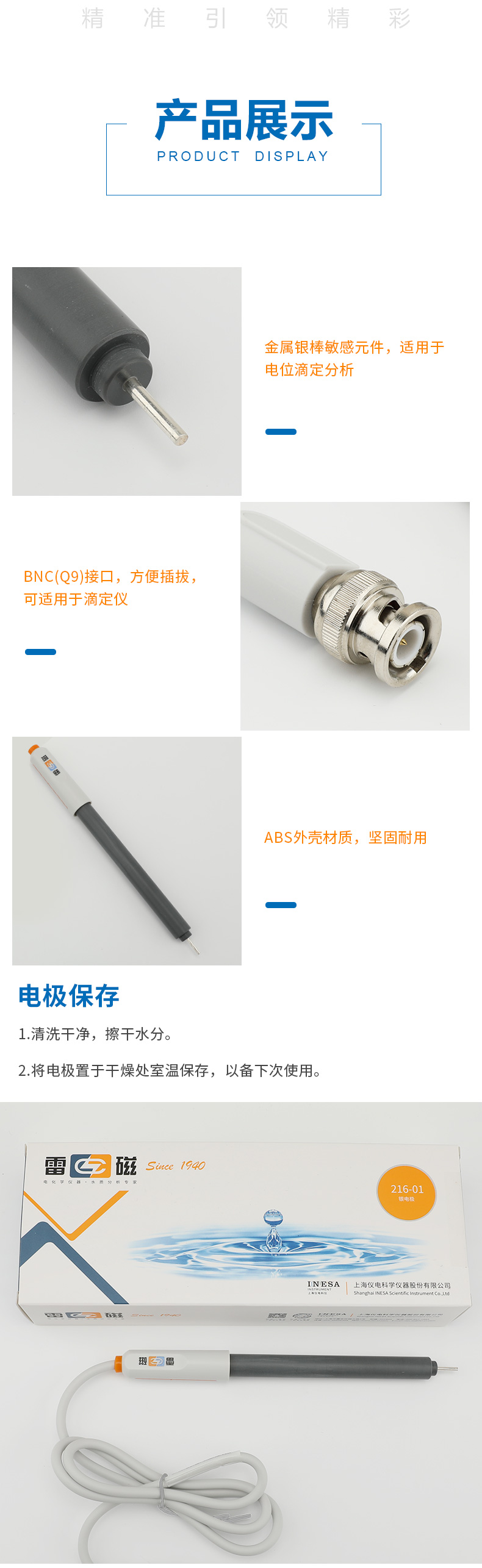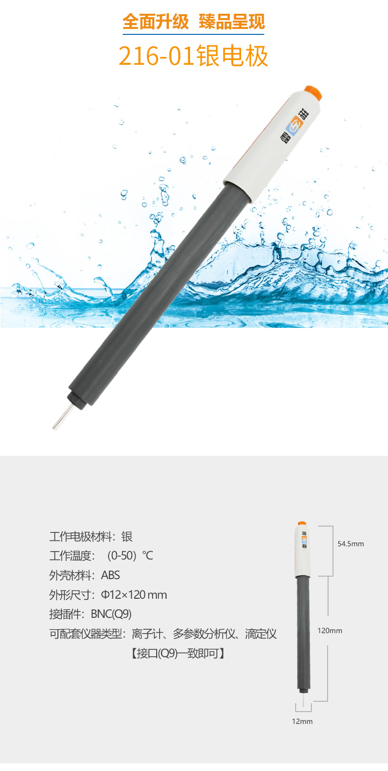 【雷磁】 金屬電極探頭傳感器 鉑銀銻鎢雙鉑 216-01銀