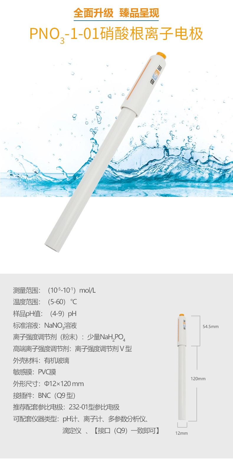 【雷磁】離子計復(fù)合電極探頭 PNO3-1-01型硝酸根離子電極