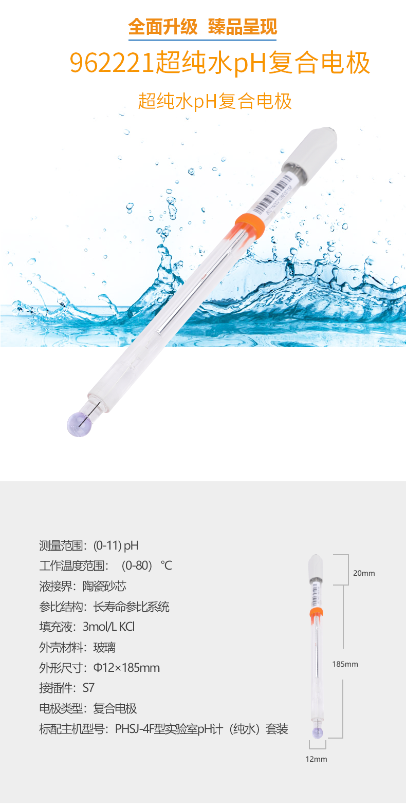 【雷磁】高端ph電極962221超純水ph復合電極