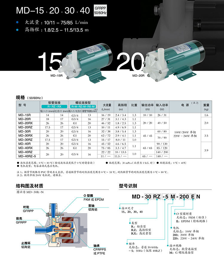 【IWAKI】易威奇磁力泵MD100-RM耐磨GFRPP材質(zhì)磁力驅(qū)動(dòng)泵藥液輸送水泵