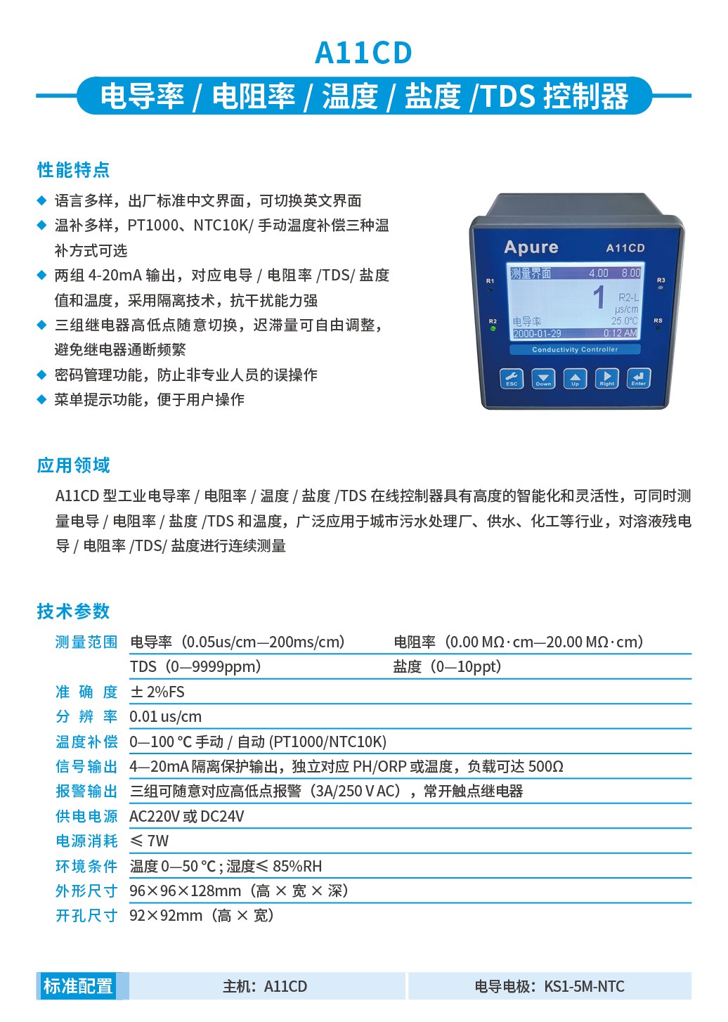 Apure電導率儀A10/A11CD工業在線電導/電阻率控制器電導率測試儀