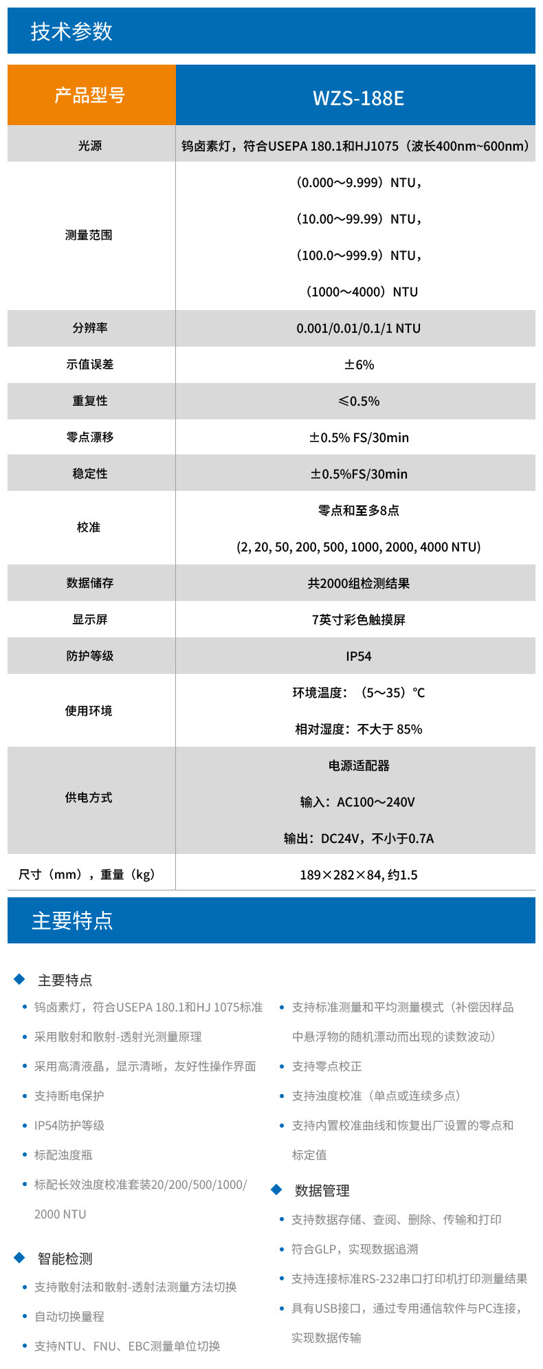 雷磁 WZS-182E/188E 在線濁度分析儀實驗室高精度水質監測設備