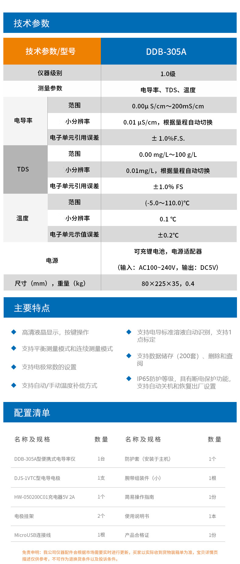 雷磁DDB系列便攜式電導(dǎo)率儀 303A/305A數(shù)顯電導(dǎo)率測(cè)試儀