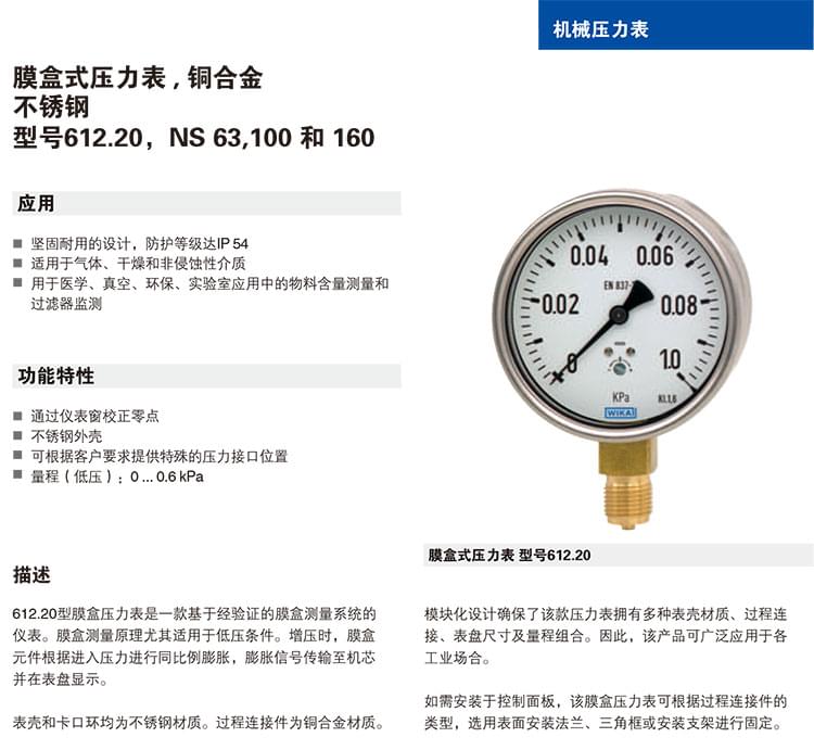 不銹鋼膜盒式壓力表612.20.63/612.20.100/612.20.160 型