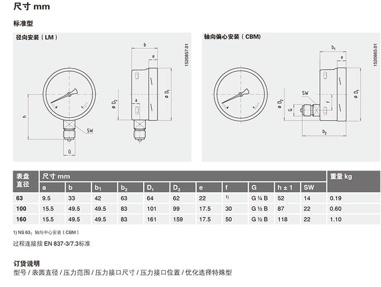 612.20系列表的表圓外徑有:63mm,100mm,160mm,例:612.20.63,即63mm表圓外徑。