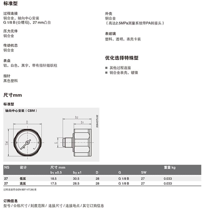 6. DELTA_plus,差壓表,同時(shí)顯示工作壓力702.01.100,DELTA_comb差壓表同時(shí)顯示工作壓力并帶有微調(diào)開關(guān)702.02.100, DELTA-switch,差壓開關(guān)851.02.100,DELTA-trans,差壓變送器891.34.2189 DELTA-comb安全檢測(cè),顯示工作壓力,帶微調(diào)開關(guān)702.03.100