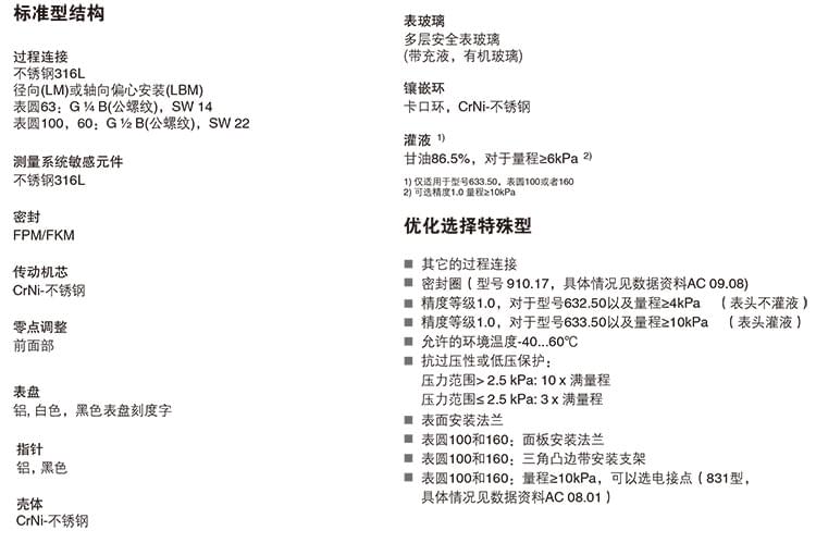 2. 膜片壓力表,化學(xué)工業(yè)型,表頭不充液/充液,高過壓保護(hù)壓力表,針對UHP應(yīng)用:422.12 432.50 432.56 423.36 423.25